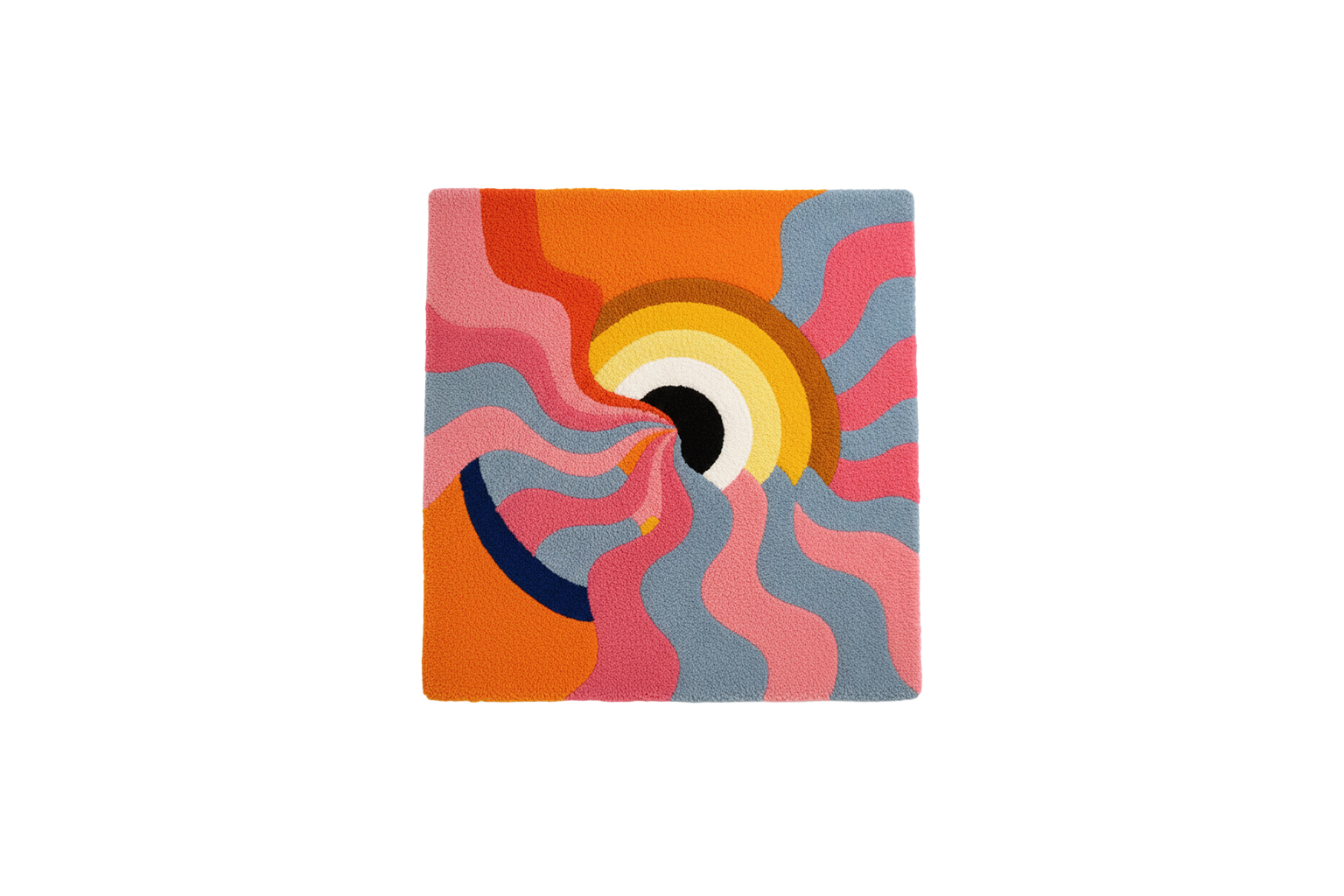 The visual language of modernist artist Mohamed Melehi, which brings Moroccan culture together with modern lines, has been transformed into tufting art. The artist’s signature wave motifs and vibrant color palette are reinterpreted on a textured surface, gaining a contemporary expression. This piece focuses on the relationship between the local and the universal by translating artworks from different cultures onto a textile surface through our own production practice.